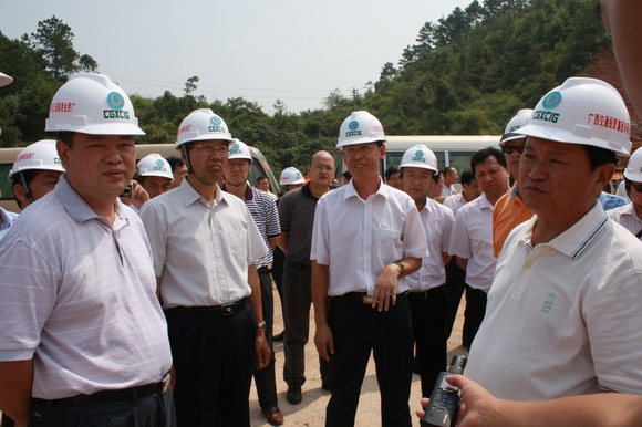 在建設(shè)施工現(xiàn)場(chǎng),車榮福書記、莫永清副主任、潘巍廳長(zhǎng)認(rèn)真聽(tīng)取了六景至欽州港高速公路工程建設(shè)指揮部關(guān)于項(xiàng)目建設(shè)進(jìn)展情況的工作匯報(bào),詳細(xì)了解該項(xiàng)目進(jìn)度、質(zhì)量、安全和征地拆遷情況,對(duì)六欽路完成預(yù)定投資目標(biāo)表示充分肯定,希望指揮部與從業(yè)單位進(jìn)一步深入貫徹落實(shí)自治區(qū)年中工作會(huì)議精神,增投入、強(qiáng)監(jiān)控,攻堅(jiān)克難,全力以赴加快推進(jìn)項(xiàng)目建設(shè)。潘巍廳長(zhǎng)還就工程建設(shè)項(xiàng)目情況作了解答,并與車榮福書記、莫永清副主任等領(lǐng)導(dǎo)交換了意見(jiàn)。