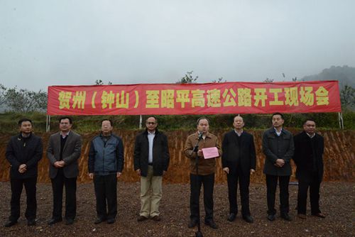 按照自治區(qū)的統(tǒng)一部署,12月29日上午10時(shí),2015年全區(qū)高速公路重大項(xiàng)目開竣工現(xiàn)場會(huì)第五分會(huì)場——賀州至巴馬高速公路(鐘山至昭平段)開工現(xiàn)場會(huì)在賀州市昭平縣舉行。集團(tuán)公司副董事長、總經(jīng)理、黨委副書記唐咸秋,總工程師覃炳賢,賀州市副市長閉海東等有關(guān)領(lǐng)導(dǎo)出席會(huì)議;賀州市、桂林市、昭平縣、鐘山縣、平樂縣等項(xiàng)目沿線各級政府領(lǐng)導(dǎo)和相關(guān)部門負(fù)責(zé)人以及廣西新恒通高速公路有限公司等有關(guān)單位代表約30人參加會(huì)議,共同見證項(xiàng)目開工建設(shè)。唐咸秋主持開工現(xiàn)場會(huì),覃炳賢介紹項(xiàng)目概況,項(xiàng)目沿線有關(guān)政府部門代表表態(tài)發(fā)言,閉海東宣布項(xiàng)目正式開工建設(shè)。