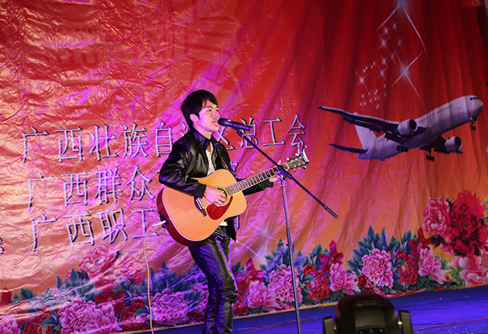 當(dāng)晚,一曲《唱著山歌等你來》拉開了演出序幕……優(yōu)美的舞蹈、詼諧幽默的小品、變化莫測(cè)的魔術(shù)、精彩絕倫的雜技等節(jié)目,多種表演形式藝術(shù)地展現(xiàn)了廣大職工誠(chéng)實(shí)勞動(dòng)、勤奮勞動(dòng)、創(chuàng)新勞動(dòng)的時(shí)代風(fēng)采,奏響了“勞動(dòng)美”時(shí)代主旋律。工地小伙也走上舞臺(tái),吉他彈唱《曾經(jīng)的你》展現(xiàn)了廣西新發(fā)展人樂于奉獻(xiàn)、克難攻堅(jiān)的時(shí)代風(fēng)采。整場(chǎng)慰問演出歷時(shí)80分鐘,贏得現(xiàn)場(chǎng)觀眾的陣陣掌聲、歡呼聲和喝彩聲,一次又一次把氣氛推向高潮。