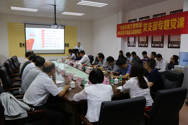 集團(tuán)公司總工程師覃炳賢參加專題黨課并做發(fā)言,就如何開(kāi)展好項(xiàng)目建設(shè)工作提出了具體要求,提出要按照“建設(shè)綠色高速,共享長(zhǎng)壽密碼”的理念,將賀巴馬高速建設(shè)成一條旅游路、一條探尋長(zhǎng)壽之路。