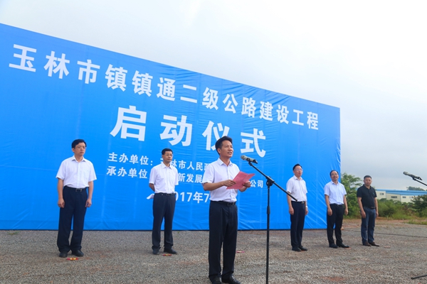 玉林市交通運輸局局長何東真主持儀式。玉林市市交運局、發(fā)改委、住建委、國土局、林業(yè)局等相關(guān)部門負責(zé)人,各縣(市、區(qū))政府分管交通工作有關(guān)部門負責(zé)人、興業(yè)縣干群代表以及新發(fā)展集團下屬企業(yè)代表參加了啟動儀式。(陳福喜 文/圖)