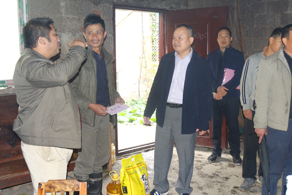 在樂業(yè)縣邏西鄉(xiāng),唐咸秋總經理來到集團公司扶貧聯(lián)系點中停村,開展走訪慰問、扶貧工作調研活動。在與駐村第一書記、村兩委干部、村民代表、貧困戶代表座談時,唐咸秋總經理表示集團公司將進一步加大精準幫扶工作力度,支持中停村集體經濟發(fā)展,幫助改善群眾交通出行條件。扶貧要先扶志,駐村“第一書記”要在思想教育上加大幫扶力度。座談會后舉行了捐贈儀式,唐咸秋同志代表集團公司向中停村捐款3萬元,用于村集體經濟(冰脆李種植基地)建設發(fā)展項目,并捐贈了1臺打印機,同時向貧困戶捐贈慰問品和慰問金,給貧困村送去溫暖和關懷。