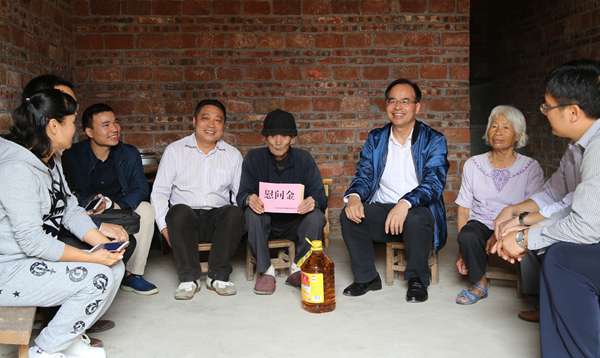 10月25日,集團公司副總經(jīng)理李德智、辦公室主任磨立堂,工程院黨總支部書記、院長謝登禹以及合山市人大常委會主任藍賓北一行到集團公司扶貧聯(lián)系來賓合山市河里鎮(zhèn)河里村開展精準扶貧日走訪慰問活動。通過開展座談交流,進一步掌握河里村脫貧攻堅進展情況,并為下一步脫貧工作提出建議與對策。同時,還來到河里村韋啟助、羅耀權(quán)、曾有姣、韋遷池等貧困戶的家里,了解生產(chǎn)生活情況,并送上了慰問金和慰問品。