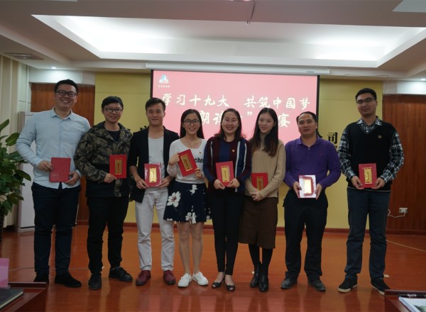 比賽產(chǎn)生一等獎一名,二等獎兩名,三等獎五名,公司副總經(jīng)理、指揮部指揮長、黨支部書記陸原恩為獲獎?wù)哳C發(fā)了榮譽(yù)證書和黨的十九大相關(guān)學(xué)習(xí)書籍。
