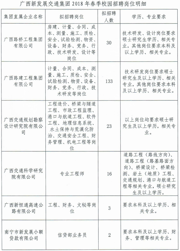 廣西新發(fā)展交通集團(tuán)2018年春季校園招聘宣講會(huì)時(shí)間及地點(diǎn)安排: