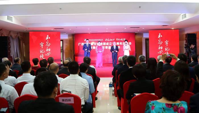 在活動現(xiàn)場入口處,設(shè)置有一面企業(yè)發(fā)展歷程墻,展示了歷年來集團公司發(fā)展取得的矚目成績?;顒娱_始后首先播放了《新時代 新發(fā)展 新征程》——廣西新發(fā)展交通集團15周年紀錄片,對15年發(fā)展史進行了有聲有色的回顧。