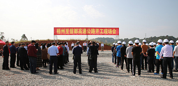自治區(qū)交通運(yùn)輸廳巡視員李小林宣布:梧州至信都高速公路項(xiàng)目正式開工建設(shè)。